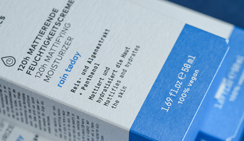 „Zunächst mussten wir einen Ansatz finden, wie wir dem Skincare-Regal mit bunten Farben und dem Gmund Used Papier eine neue, frische Optik verleihen können. Ähnlich wie bei der Produktentwicklung von Skincare, haben wir auch bei der Zusammenarbeit mit Gmund so lange an den Papieren getüftelt, bis alle Beteiligten vollkommen zufrieden waren. Zunächst haben wir ein Produkt umgestellt, um die Resonanz zu testen. Nach positivem Feedback folgten dann alle weiteren Produkte. Unsere Überzeugung von Gmunds Mission war so groß, dass es uns ein besonderes Anliegen war, das Gmund Used Logo auf unseren Umverpackungen zu integrieren – ein sichtbares Zeichen unseres gemeinsamen Engagements für Nachhaltigkeit.“