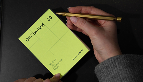 Der „Off the Grid“ Notizblock vereint Funktionalität mit herausragender Qualität. Gefertigt aus reinem Gmund Papier, besticht er durch ein klares Design. Erhältlich in drei verschiedenen Varianten mit aufeinander abgestimmten Größen. Die Innenseiten aus mattem Naturpapier bestehen aus recycelbaren Pflanzenfasern. Ein klares Gmund Bekenntnis zu Nachhaltigkeit und umweltfreundlichen Produkten. Die einseitige Verleimung sorgt zudem für einfaches Umblättern, ohne an Stabilität zu verlieren. Das alles „Made in Germany“ – für eine besondere Haptik und Qualität.