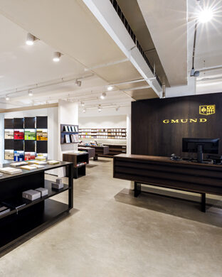 What was once a warehouse has been transformed into a stylish stationery shop. The store shines in modern splendour, with stylish glass walls that allow a view into the offices of the Gmund designers.
