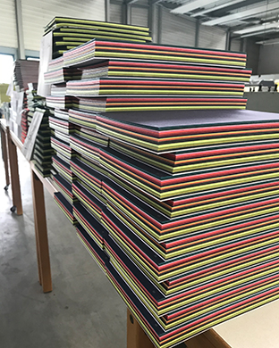 Les blocs sont ensuite assemblés manuellement pour former un outil complet et sont ensuite envoyés à un relieur pour la reliure. Les papiers sont ensuite pressés, à nouveau découpés et encollés à la main au dos avec une colle spéciale. Ce processus complexe en plusieurs étapes s’achève par le contrôle final de chaque outil Gmund Alles après la coupe finale. « Nous n’avons jamais reçu de réclamation concernant la durabilité du produit », rapporte fièrement Peter Kunz. Pourtant, les questions sur la stabilité et les exigences en matière de reliure spéciale étaient très importantes au préalable. Dès le début, Gmund a défini avec précision le nombre de retournements de feuilles que chaque type et chaque épaisseur de papier devaient « supporter ». Cette exigence est également testée à plusieurs reprises.