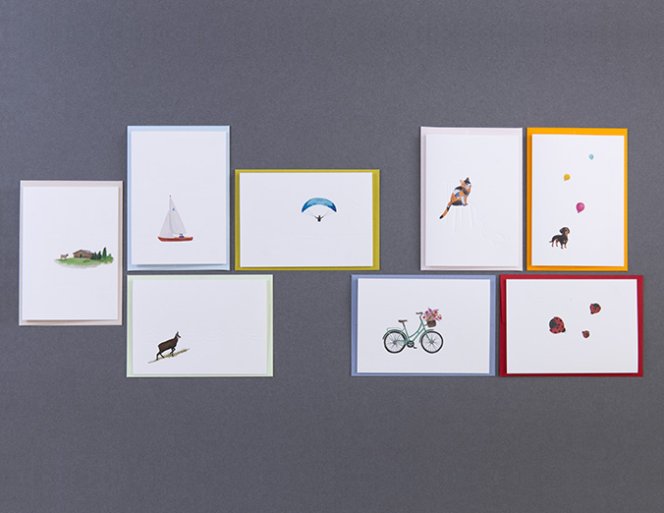 Die wunderschöne Umgebung am Tegernsee stand Pate bei der Gestaltung dieser Kartenserie für sommerliche Grüße. Blindprägung, satter Offsetdruck und Gmund Colors Matt Papier - so entsteht hier eine charmante Sommerkarte, welche nicht nur optisch, sondern auch haptisch, wahre Freude macht.
