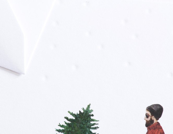 Das voluminöse Papier aus 100% Baumwollfaser ist aufgrund seiner Beschaffenheit prädestiniert für Buchdruck-Anwendungen. Mit einer filigranen Blindprägung wurde hier eine Winterspur nachgeahmt. Kombiniert mit dem satten Offsetdruck entsteht hier ein wunderschönes winterliches Motiv, welches nicht nur optisch, sondern auch haptisch, wahre Freude macht.