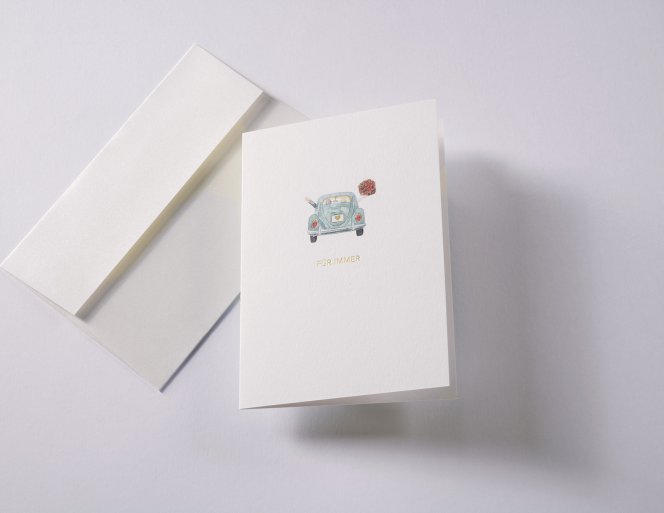 Offsetdruck trifft auf filigrane goldene Heißfolienprägung – ein perfektes Duo, das jede Karte zum echten Blickfang macht.
