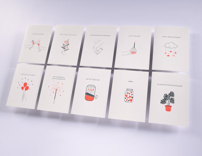 Vom Papier, über die liebevolle Illustration bis hin zum Buchdruck ist hier alles Made by Gmund. Buchdruck kombiniert mit Gmund Papier - das matcht! Die Zweifarbigkeit verleiht den Grußkarten das gewisse Etwas. Wer bisher noch kein Letterpress-Fan war,ist es jetzt garantiert!