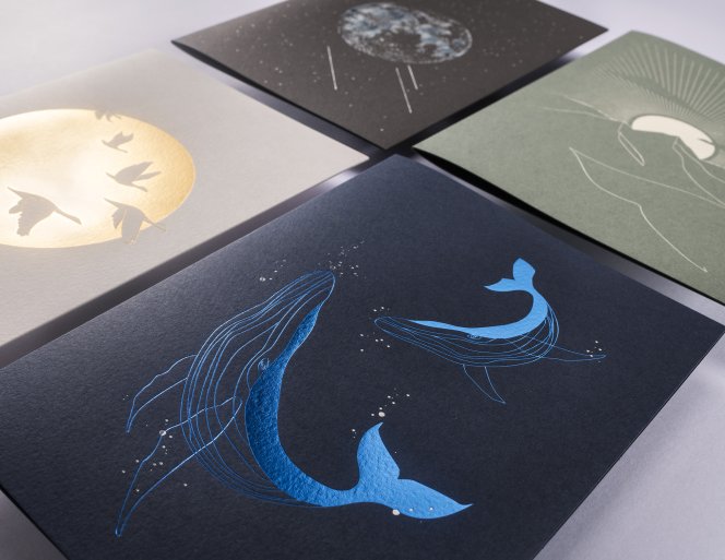 Jede Karte ist ein kleines Kunstwerk, das glänzende Akzente setzt und besondere Botschaften stilvoll in Szene setzt.