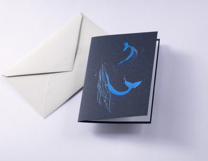 In der Grußkarte finden Sie einen weißen Einleger, den Sie perfekt mit Ihren persönlichen Zeilen beschriften können. Zu jeder Karte erhalten Sie ein edles Kuvert aus 100% Baumwollfasern.