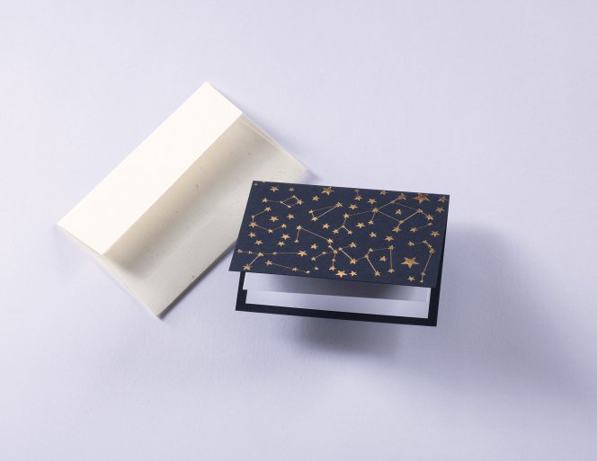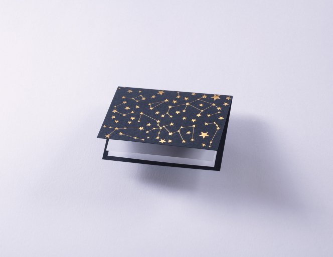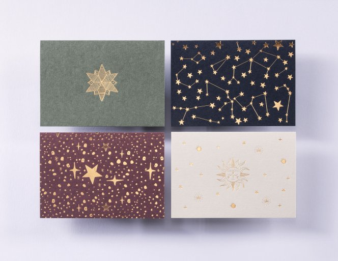Unsere edle Kartenserie im handlichen C7-Format (A7) begeistert mit himmlischen Motiven in goldener Heißfolienprägung – funkelnde Sterne, strahlende Sonnen und zarte Sternbilder verleihen jeder Karte eine besondere Magie.