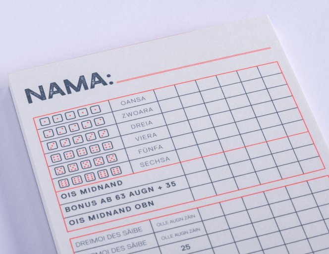 Übersichtlich gestaltet, leicht zum Ausfüllen und perfekt abgestimmt auf zünftige Würfelrunden.