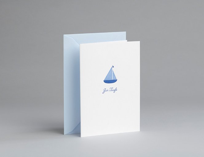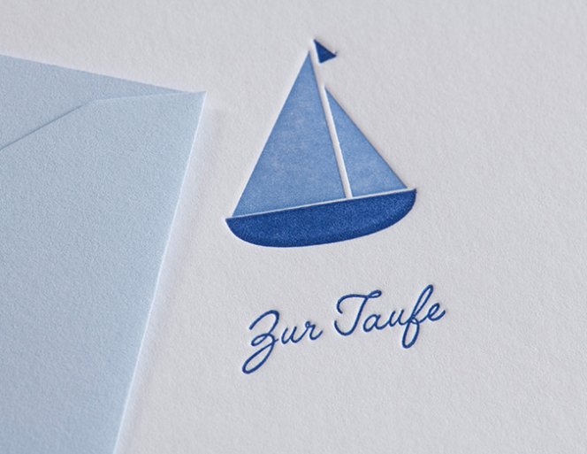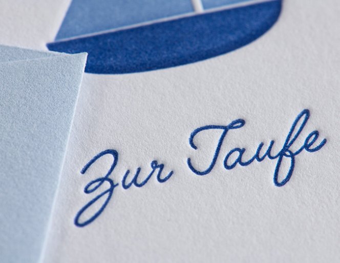 Gmund Cotton Papier ist nicht umsonst der Liebling des Buchdrucks: Die tiefe Prägung kommt dank der sanften Oberfläche des Papiers perfekt zur Geltung. Zur Taufe wirkt dieser zweifarbige Buchdruck besonders schön. Diese Karte ist auch in einem zarten Roséton erhältlich.