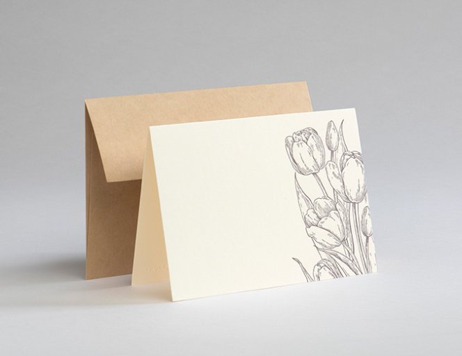 Ein zartes Blumenmotiv zu den ersten warmen Frühjahrstagen im Jahr - gern gesehen zum stilvollen Verschenken. Violetter Buchdruck auf feinen, pastelligen Papierfarben aus der Gmund Papier Kollektion. Kombiniert mit einem Kuvert aus nachhaltigem, ungebleichtem Papier. Eine wunderschöne Grußkarte, die durch hochwertiges Druckhandwerk zu begeistern weiß.