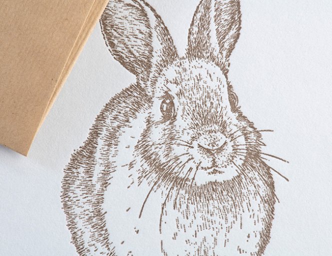 Der Hase - unser beliebtes Motiv zu den Ostertagen auf einer Klappkarte umgesetzt. Grauer Buchdruck auf feinen, pastelligen Papierfarben aus der Gmund Papier Kollektion. Kombiniert mit einem Kuvert aus nachhaltigem, ungebleichtem Papier. Eine wunderschöne Grußkarte, die durch hochwertiges Druckhandwerk zu begeistern weiß.