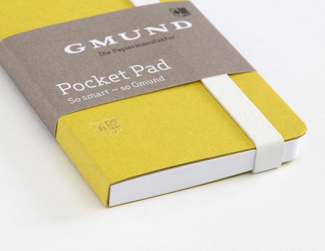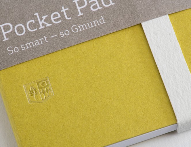 Immer griffbereit und in neuen Trendfarben! Die abgerundeten Ecken machen das Pocket smart und unverwechselbar. Neben der handlichen Größen und dem ansprechenden Design überzeugt es durch raffinierte Details. Einsteckfach für Visitenkarten, Gummiband und Freiraum für Notizen. Das Cover ziert das Gmund Wappen in edler Heißfolienprägung.