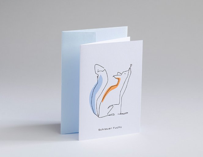 Grußkarte mit einem charakteristischen Tiermotiv im Buchdruck veredelt.