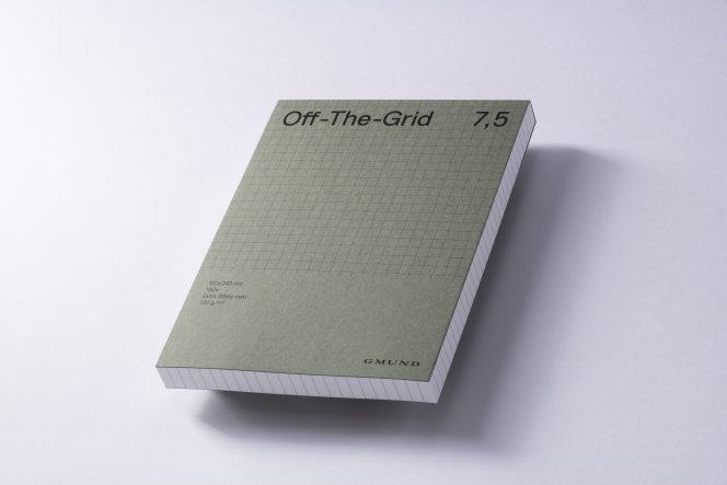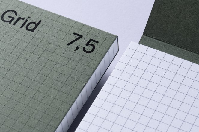 Hergestellt aus reinem Gmund Papier und einseitig verleimt, besticht er durch sein klares, symmetrisches Design sowie ein innovatives Karo-Raster.