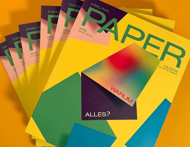 Unser neues Gmund Magazin ist da! In der fünften Ausgabe dreht sich alles um unsere farbigen Papiere und die Vielfalt, die sie ermöglichen. Unser Gmund Paper bietet Ihnen spannende Einblicke in die bunte Welt von Gmund Papier, exklusive Artikel über unsere Kunden und ihre beeindruckenden Papierprojekte und jede Menge kreative Anregungen und innovative Ideen. Abgerundet wird das Magazin von einer Auswahl an Musterpapieren.