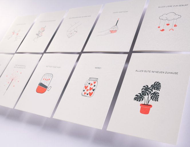 Vom Papier, über die liebevolle Illustration bis hin zum Buchdruck ist hier alles Made by Gmund. Buchdruck kombiniert mit Gmund Papier - das matcht! Die Zweifarbigkeit verleiht den Grußkarten das gewisse Etwas. Wer bisher noch kein Letterpress-Fan war,ist es jetzt garantiert!