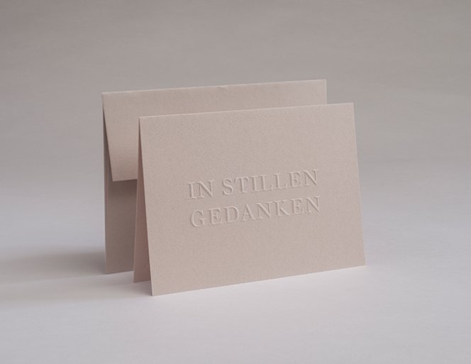 Worte werden haptisch! Diese Grußkarte hinterlässt einen spürbaren Eindruck. Die Karte ist mit einer dezenten Blindprägung veredelt und wirkt so zurückhaltend und einprägsam zugleich.
