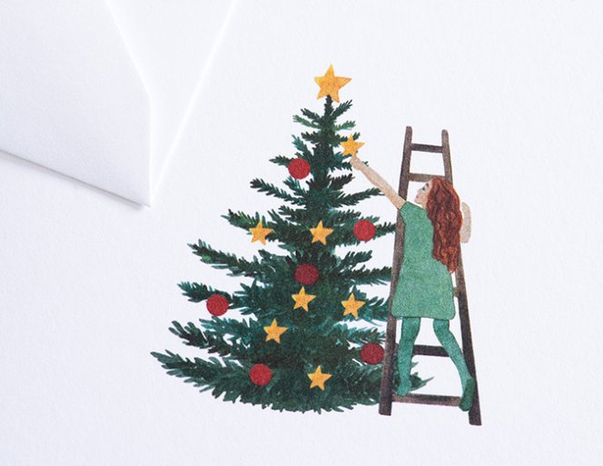 Winterkarte Spuren im Schnee - Weihnachtsbaum