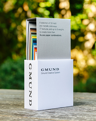 Gmund Creativ System - Das Gmund Creative System eröffnet eine Welt voller unbegrenzter Möglichkeiten. Über 30.000 Kombinationen warten darauf, entdeckt zu werden: 50 Farben in matt oder metallic, kombiniert mit 77 einzigartigen Prägungen und verschiedenen Papiergewichten. Ihr individuelles Basispapier, perfekt abgestimmt auf Ihr Projekt. Mit dem Gmund Creative System wird Ihre kreative Vision Wirklichkeit.