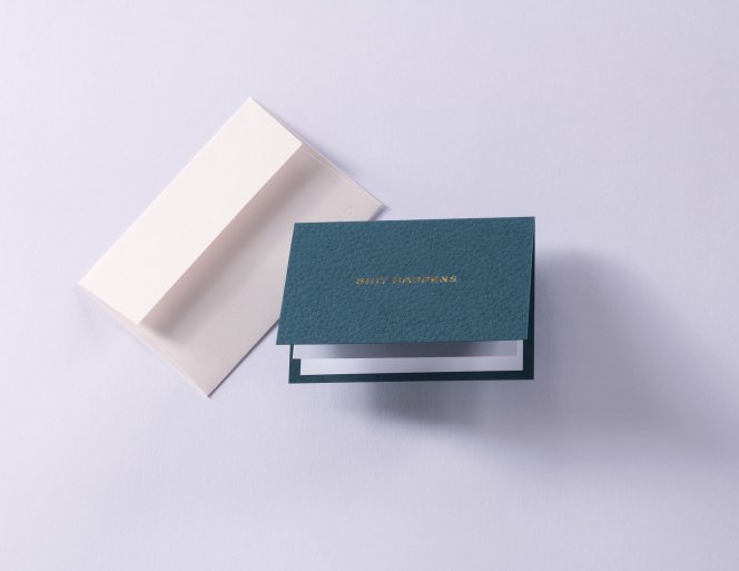 The "Little Color Notes" card series offers a small, colorful greeting for almost any occasion. Suitable for a lovely greeting! Petrol-colored paper surface with leather embossing and gold hot foil finish in small DIN A7 format. With a Gmund envelope made of natural paper, this greeting card also complements a flower gift or a small gift.