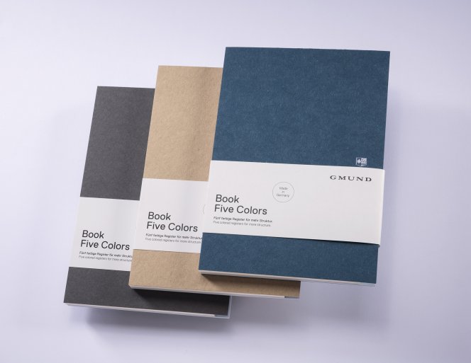 Fünf farbige Register für mehr Struktur. Cover aus Naturkarton.