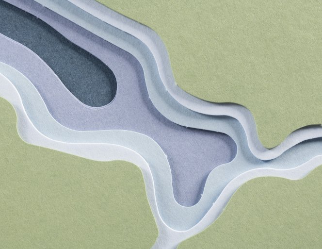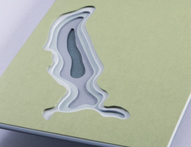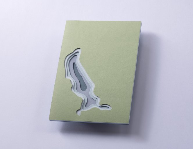 A notepad that brings landscape to life: five die-cut paper layers come together to form the distinct silhouette of Lake Tegernsee. The precise craftsmanship creates a subtle paper relief, giving the block depth and character.