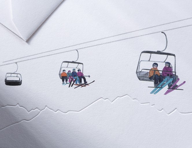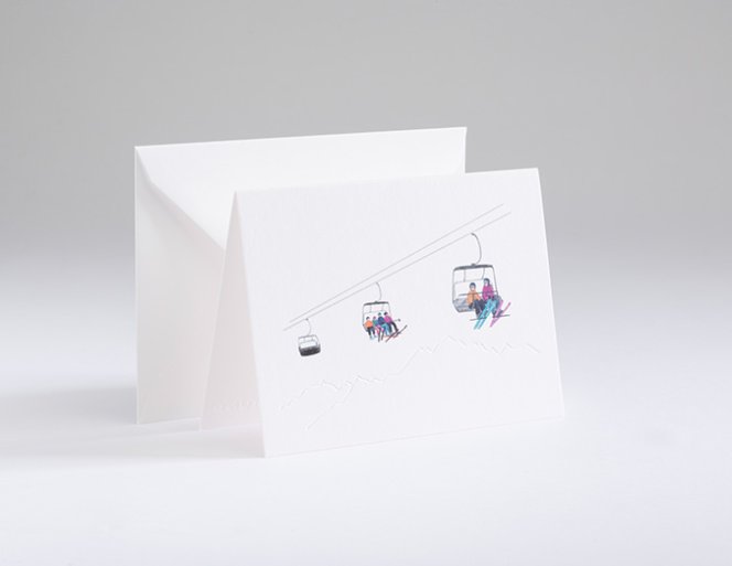 The voluminous paper made of 100% cotton fiber is predestined for letterpress applications due to its texture. A wintry silhouette was imitated here with a filigree blind embossing. Combined with the rich offset print, the result is a beautiful motif that is not only visually pleasing, but also tactile.