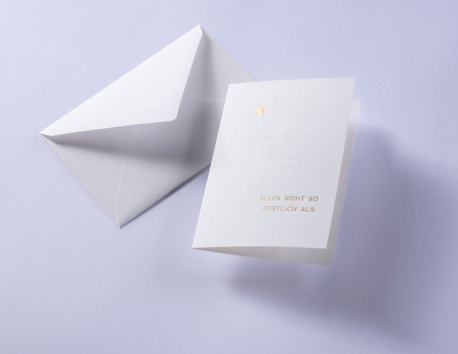 Le papier coton sélectionné et le gaufrage magistral allient une expérience sensuelle à une esthétique de qualité. La carte et l'enveloppe sont parfaitement assorties - un duo harmonieux qui montre la valeur dans chaque détail.